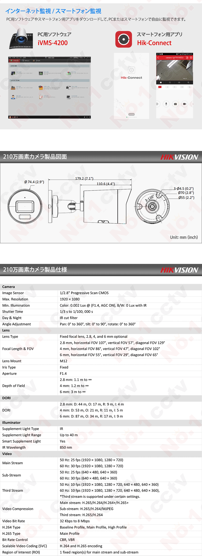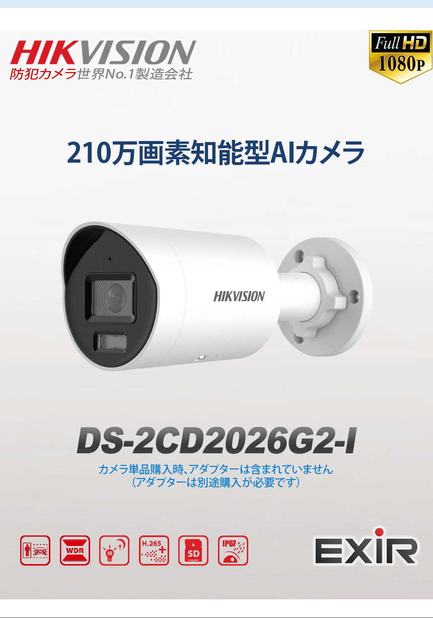 【提携倉庫より発送】[HIKVISION] [IP-2M] 210万 24時間カラー AI IPカメラ/DS-2CD2026G2-I/逆光,露出,ハイライト補正対応/人物や車両検知アラーム/LED 40M/H.265+/PoE/防水/顔認識/SDカード装着可/メタル素材