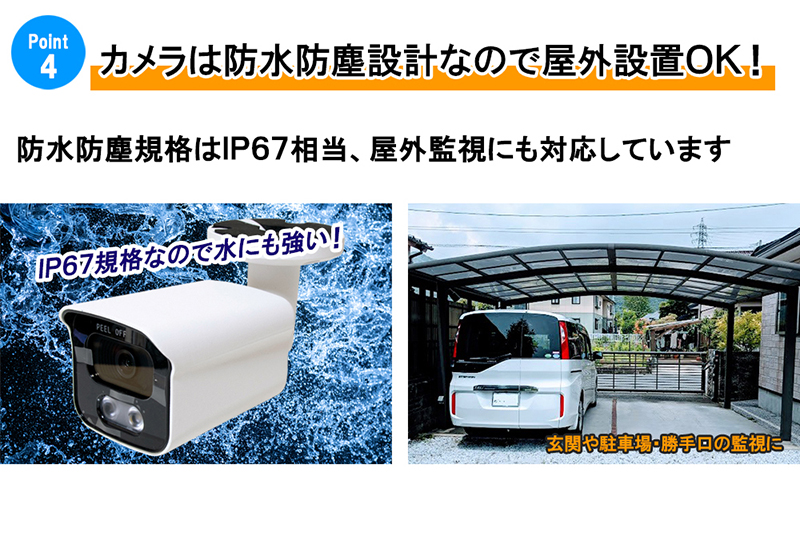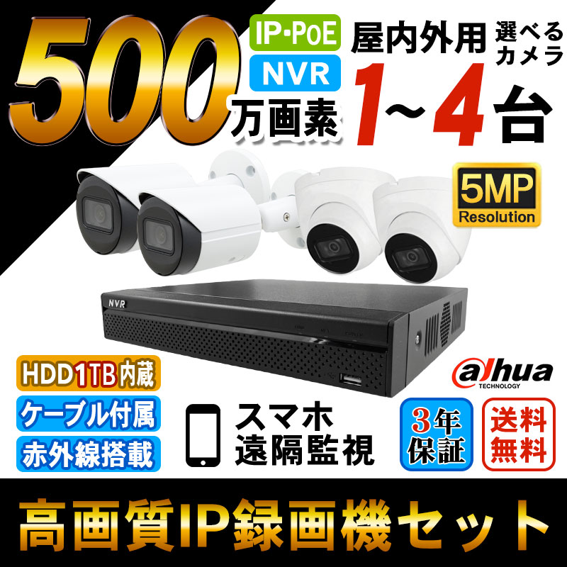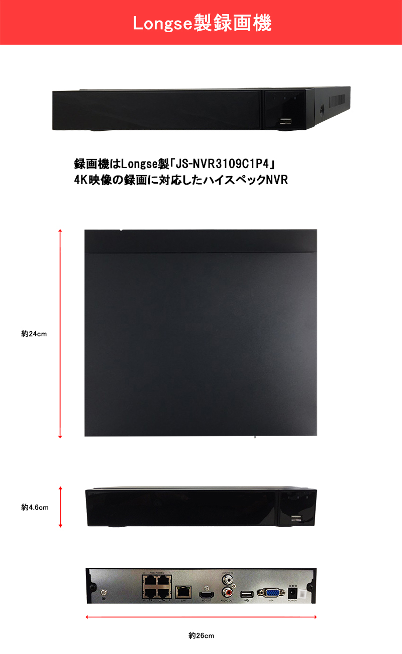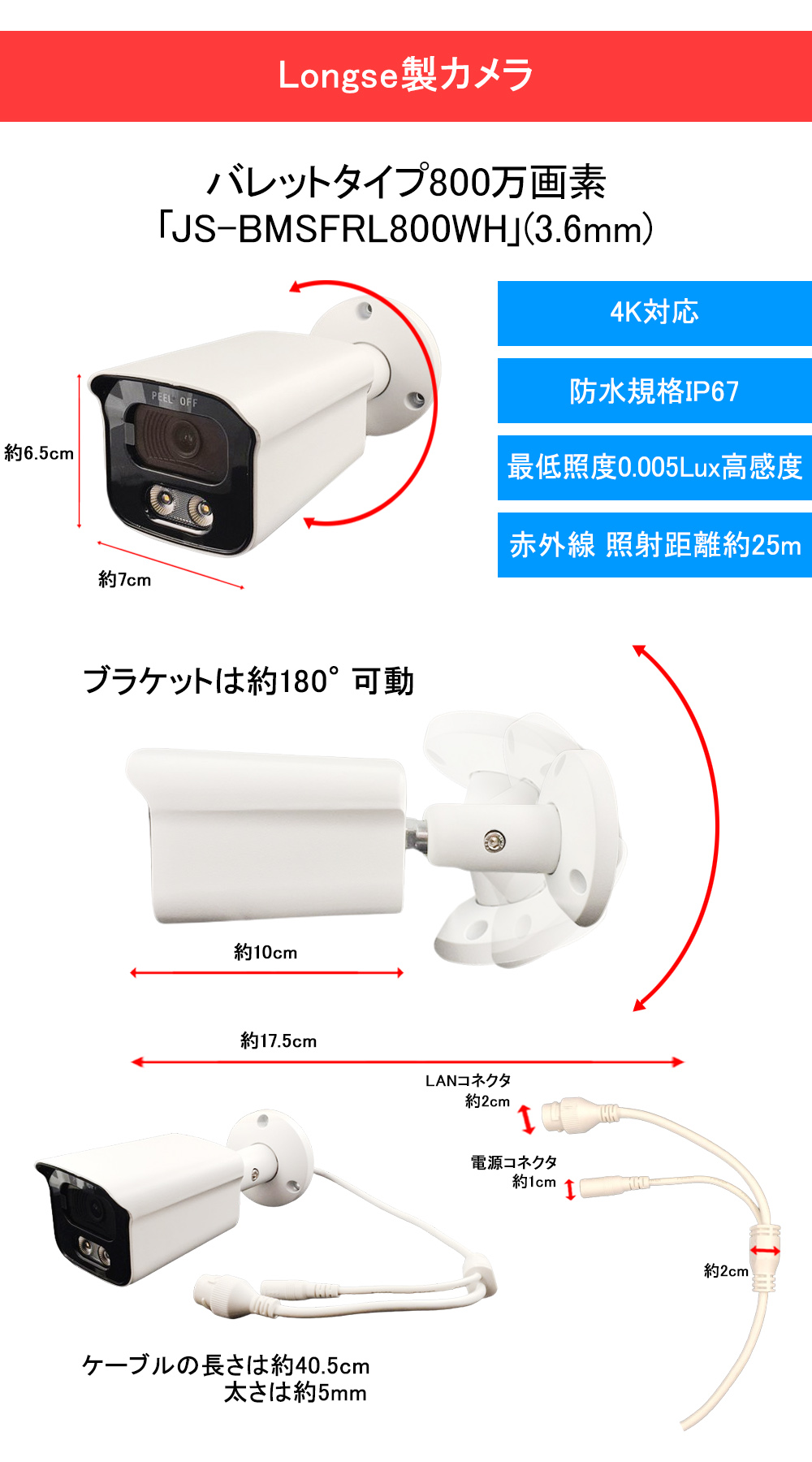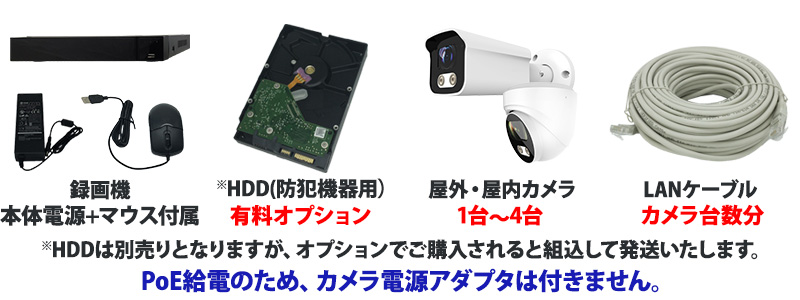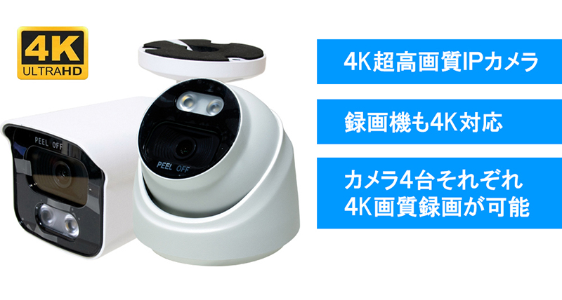防犯カメラセット 4K フルカラー IP 屋内屋外カメラ1~4台 レコーダーHDD別 4chNVR カメラ電源不要 スマホ監視 PoE 4KIP-SETJS-4CH-TS