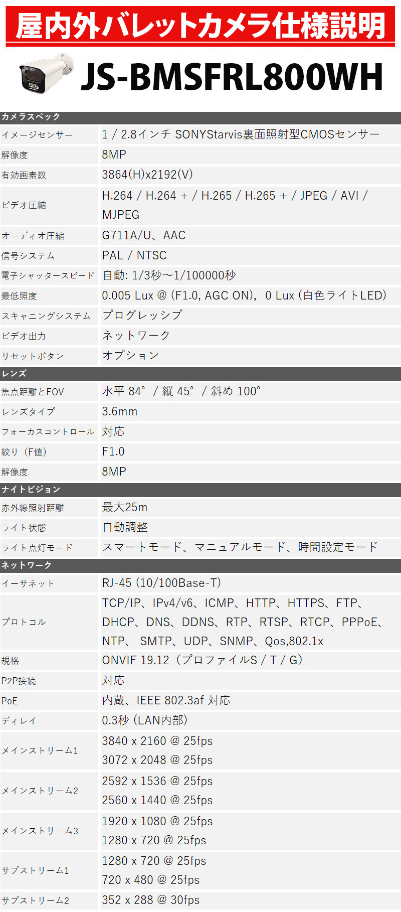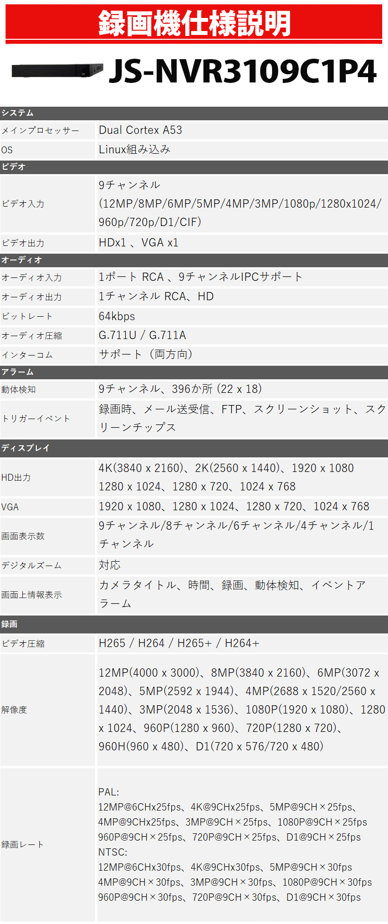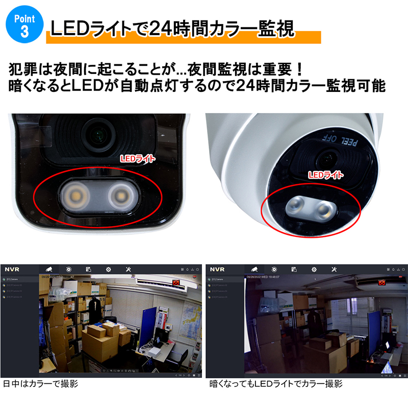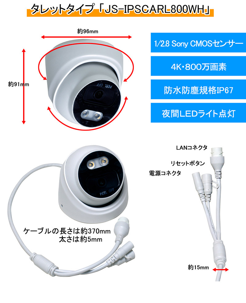 防犯カメラセット 4K フルカラー IP 屋内屋外カメラ1~4台 レコーダーHDD別 4chNVR カメラ電源不要 スマホ監視 PoE 4KIP-SETJS-4CH-TS