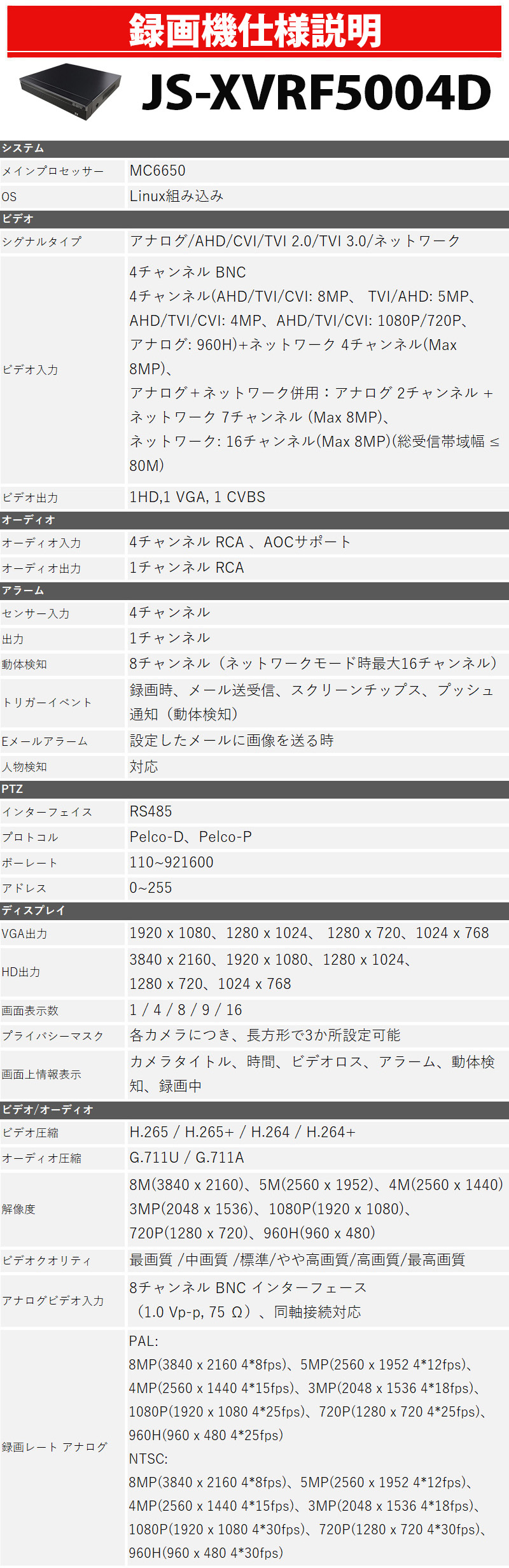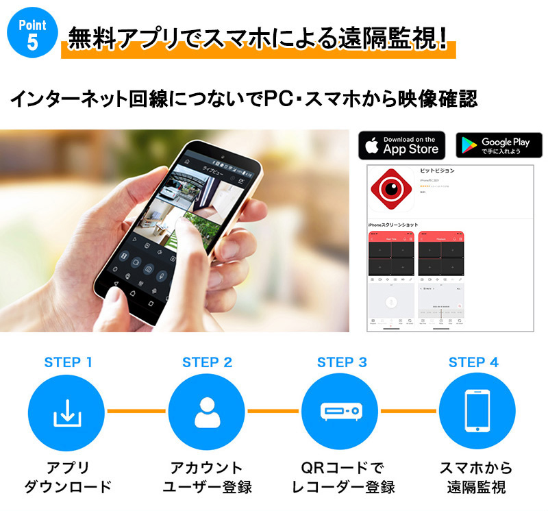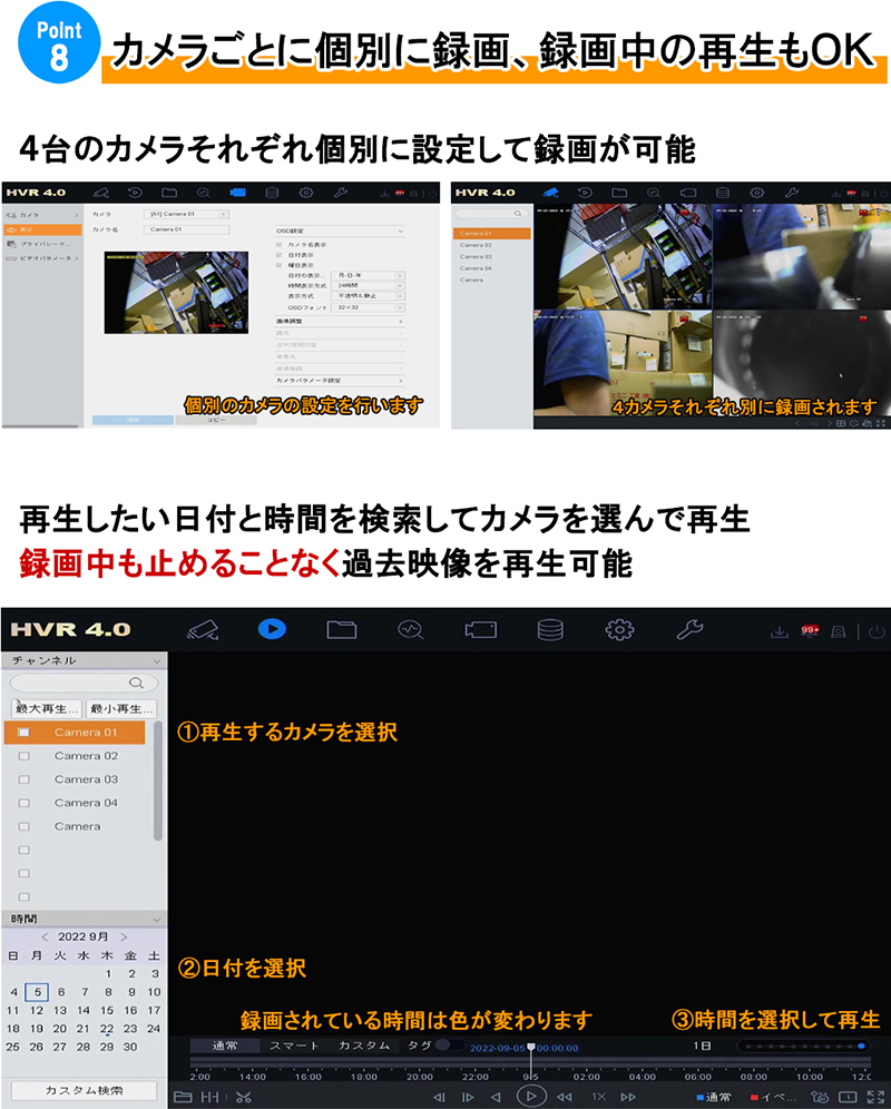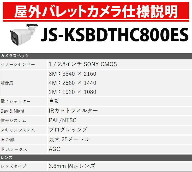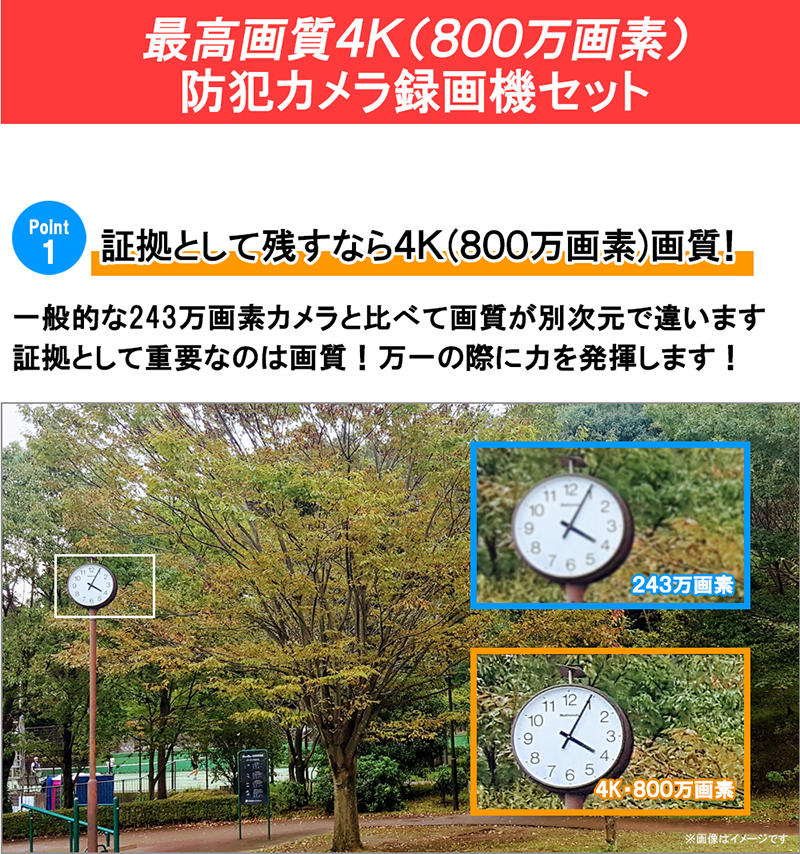 防犯カメラセット 4K アナログ 屋内屋外カメラ1~4台 レコーダーHDD別 4chDVR スマホ監視 4K-SETJS-4CH-TS