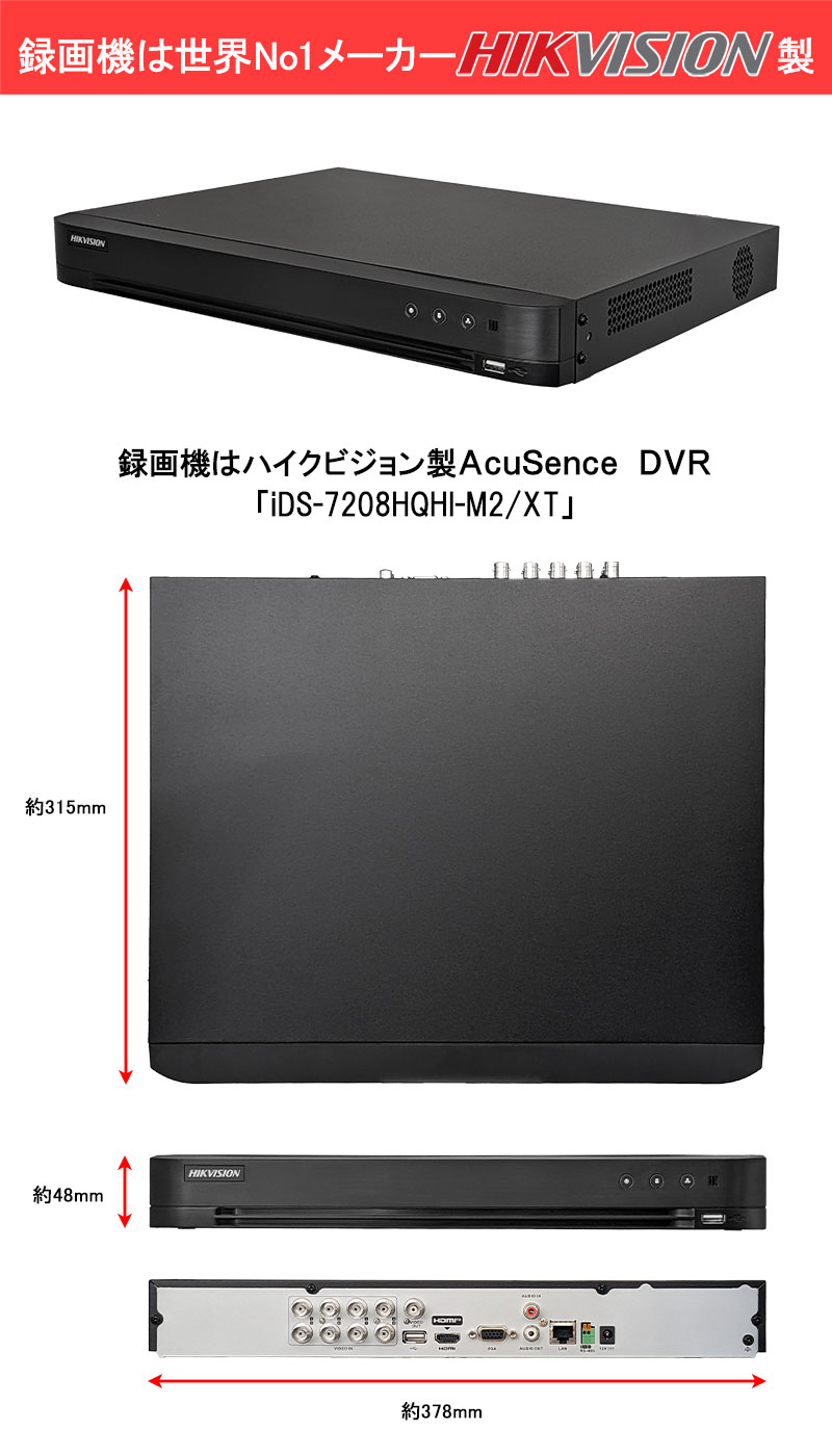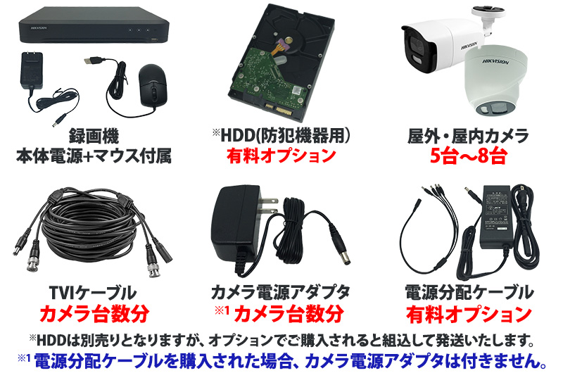 防犯カメラセット 家庭用 屋内屋外 HIKVISION(ハイクビジョン) フルカラー アナログ 5~8台セット 243万画素 レコーダーHDD別 8chDVR スマホ監視 TVI-COLORVU-SET-8CH-TS
