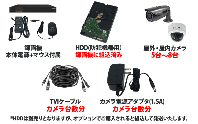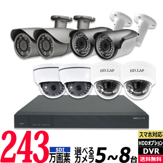 防犯カメラセット 屋内屋外 HIKVISION(ハイクビジョン) アナログ 5~8台セット 243万画素 SDI レコーダーHDD別 8chDVR スマホ監視 SDI-SET-8CH-TS