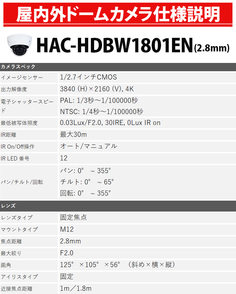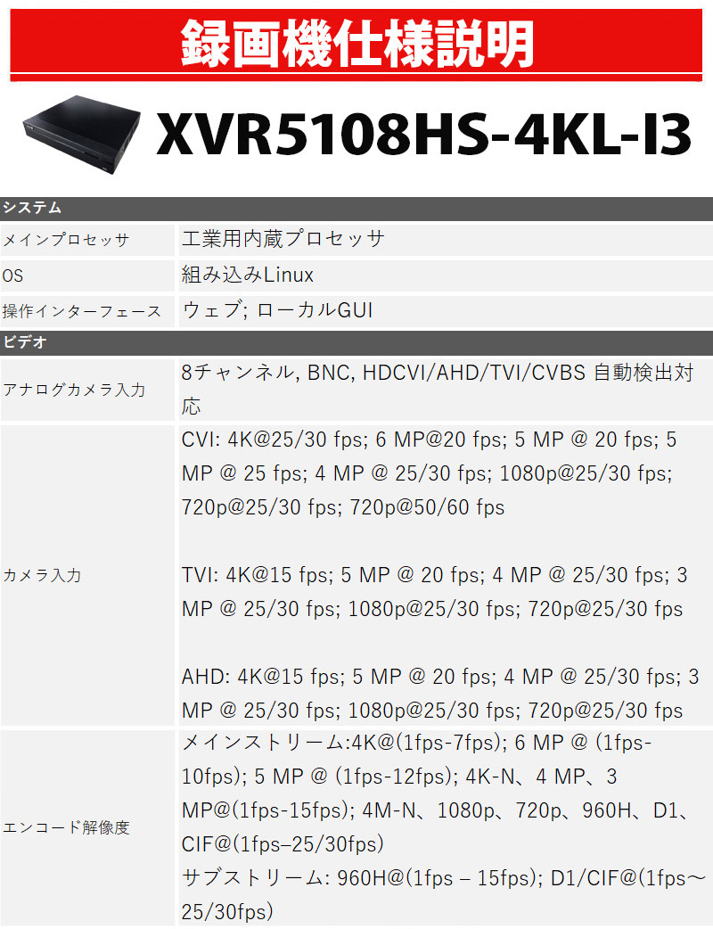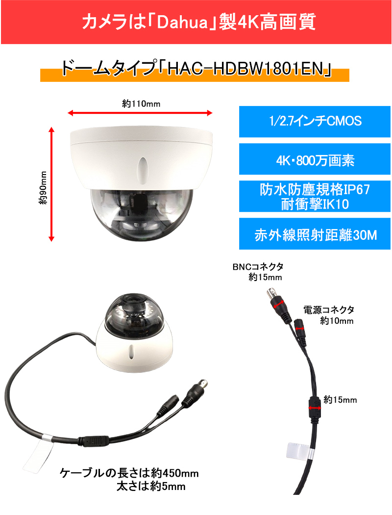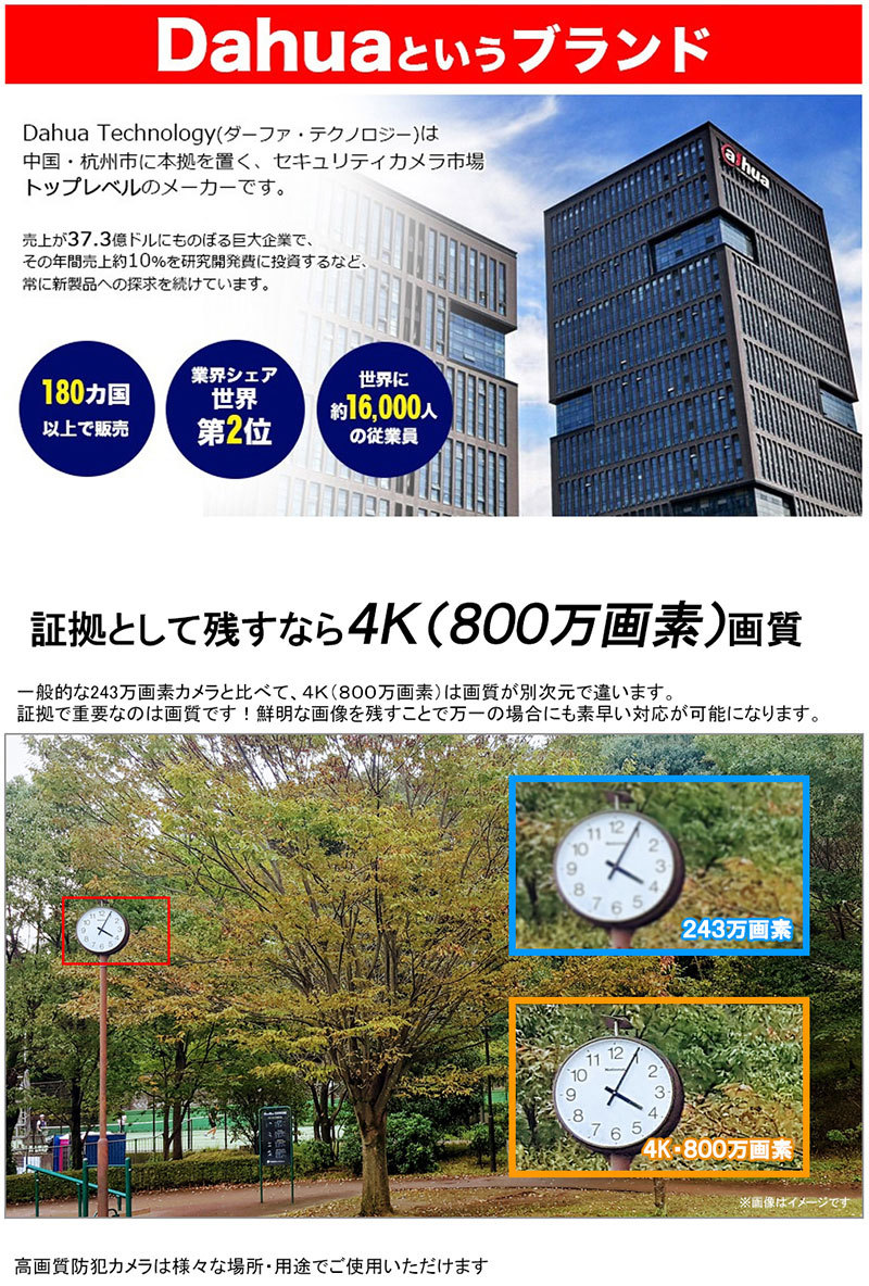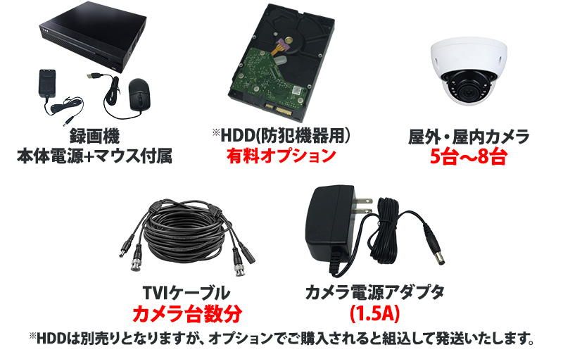 防犯カメラセット 屋内屋外 アナログカメラ5~8台セット DAHUA(ダーファ) 4K レコーダーHDD別 4K-CVISET-8CH-TS