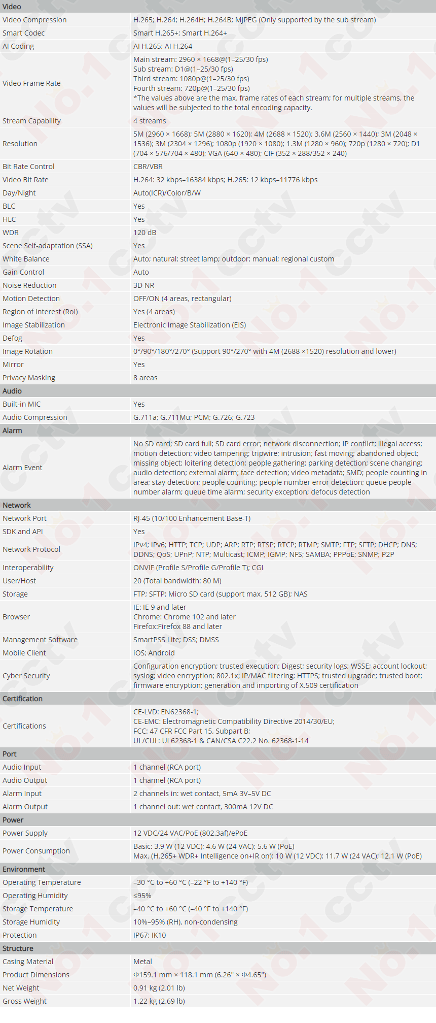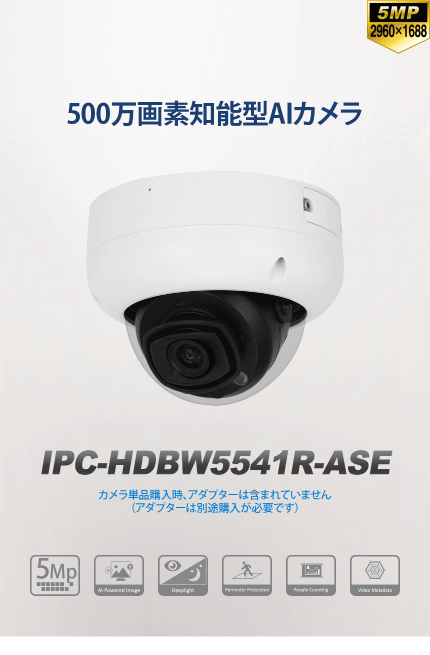 [DAHUA][IP-5M] AI 防犯用カラーカメラ/IPC-HDBW5541R-ASE/逆光,露出,ハイライト補正/夜間50M/ePOE/SD可能/防水/Smart H.265+/マイク内蔵/徘徊監視/侵入監視